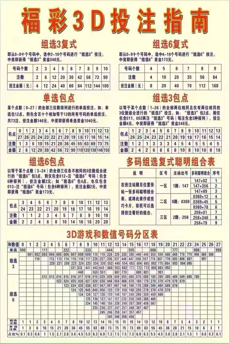 3D由台灣福彩中心发行和组织销售,由福彩销售机构在所辖区域内销售。 3D采用计算机网络系统发行,在福彩销售机构设置的销售网点销售,每天销售一期。 3D是指以三个号码排列或组合为一注进行单式投注,投注号码由0-9组成,三个位置从左至右分别为“百位”、“十位”、“个位”,一组三个号码的排列或组合称为一注。每注金额人民币2元。购买者可对其选定的投注号码进行多倍投注,投注倍数范围为2-99倍。单张彩票的投注金额最高不得超过20000元。
